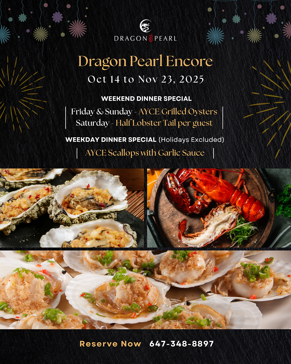 Get ready for the Dragon Pearl Encore - a celebration of fall flavours and seafood indulgence you won’t want to miss. From sizzling scallops to smoky oysters and buttery lobster tails, every night brings a new reason to feast.