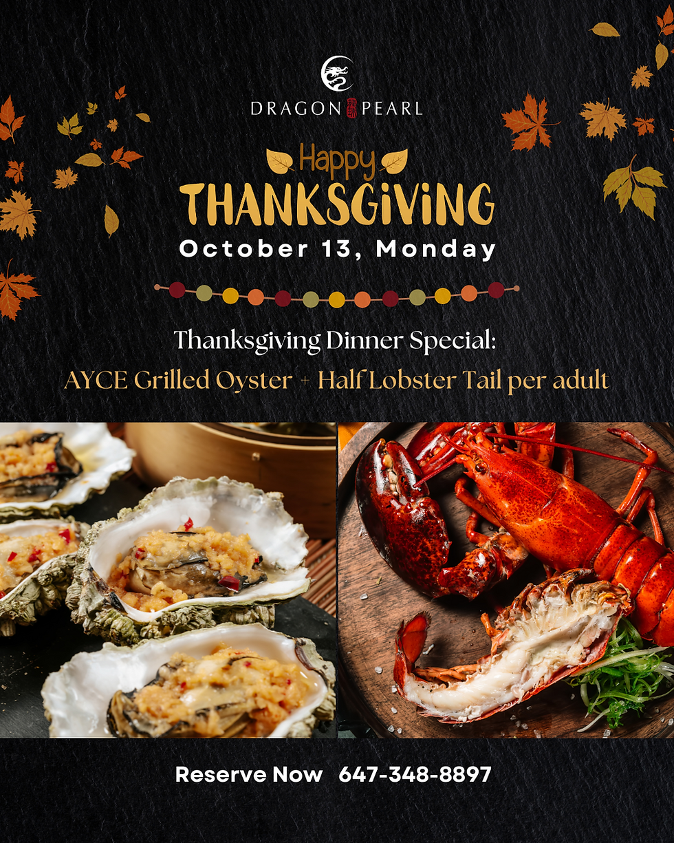 This Thanksgiving, gather your loved ones for a grand feast at Dragon Pearl Buffet — where gratitude meets indulgence. Join us for an unforgettable evening filled with premium seafood, warm hospitality, and all the flavours that make the season special.